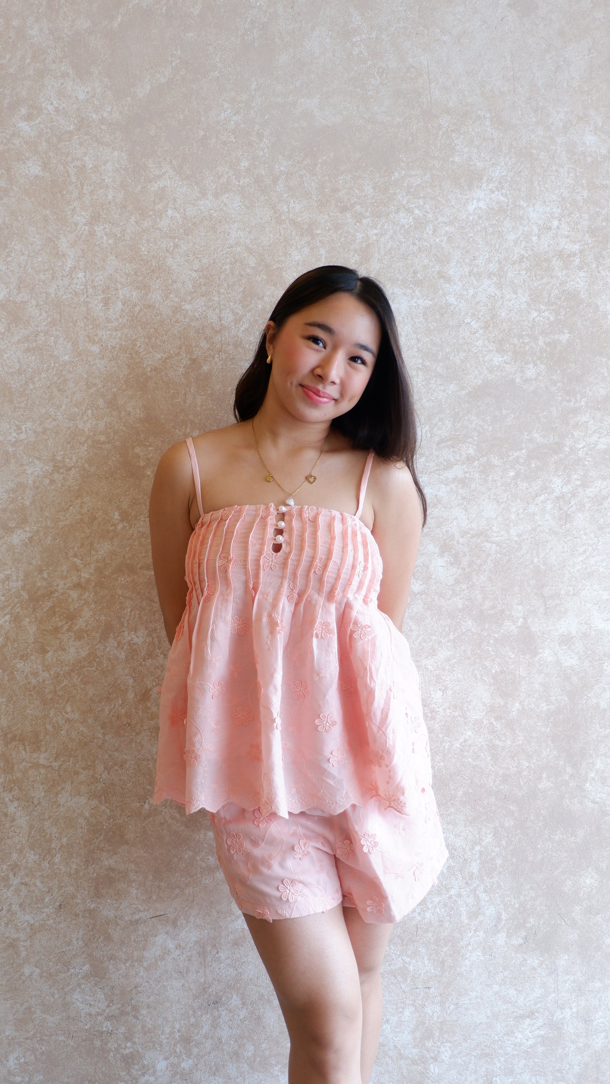 - Salmon Pink: Model is 5'5" and is a sizeMedium