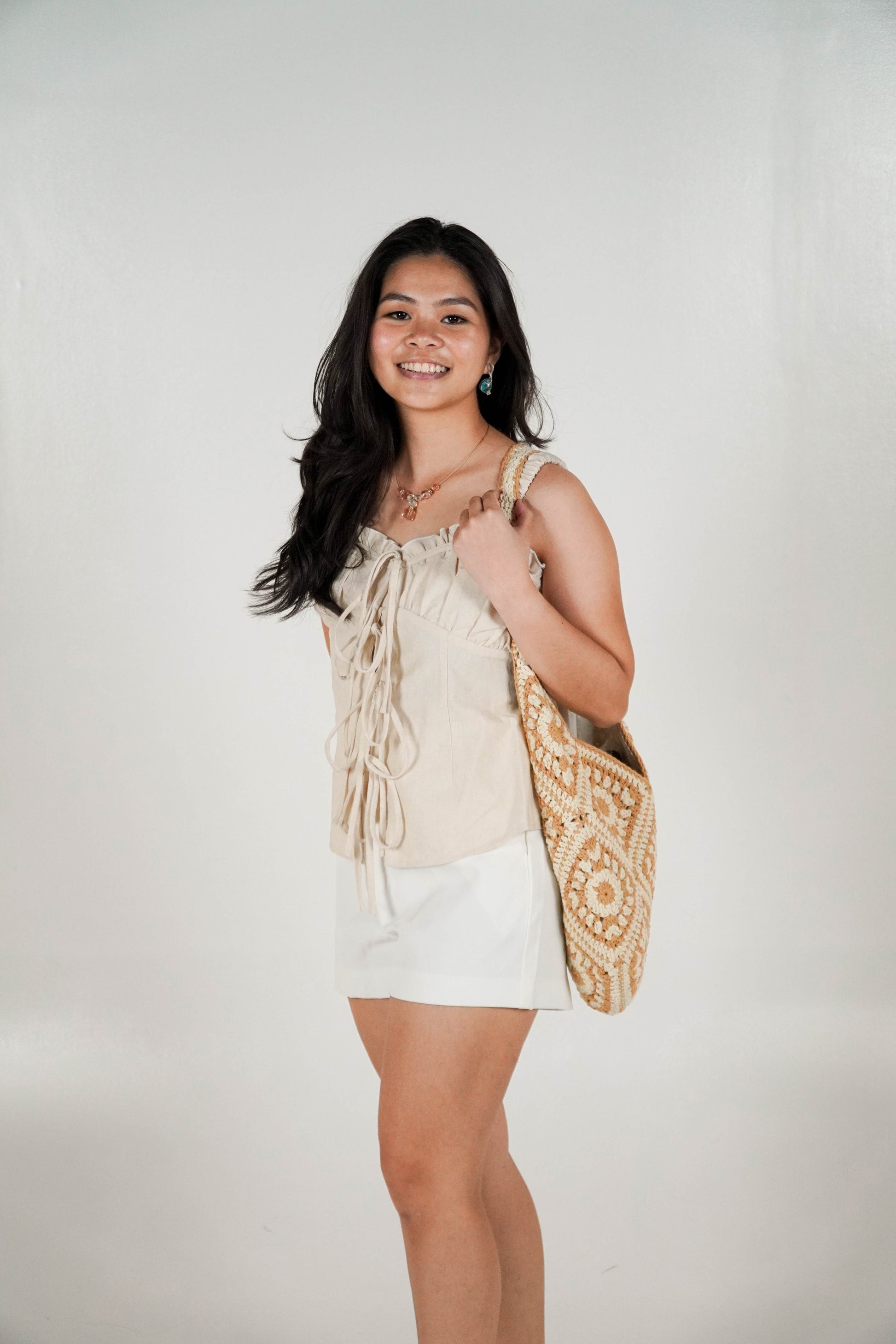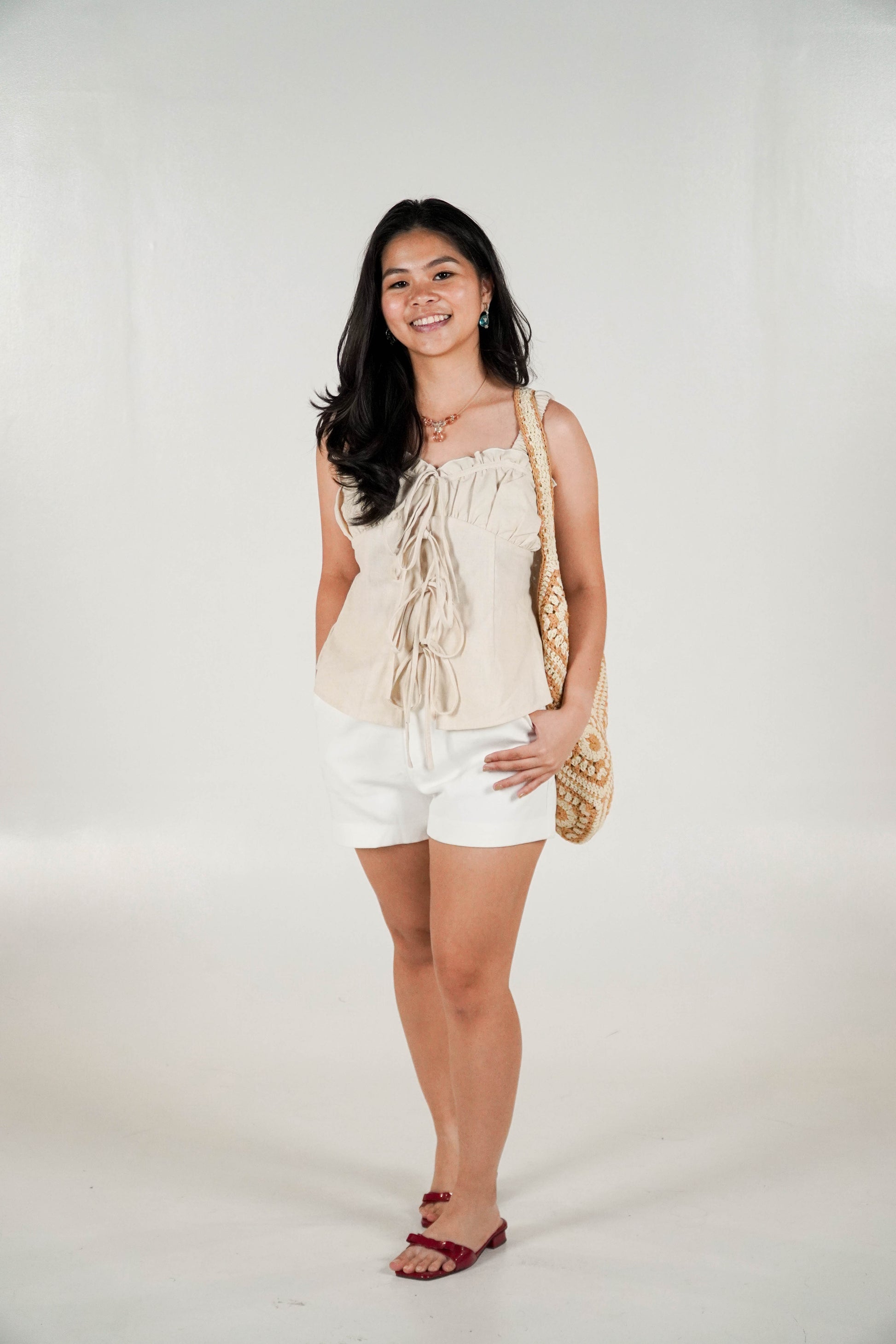 - With an adorable 3-tie front and a flattering sweetheart neckline, this top brings just the right touch of sophistication.