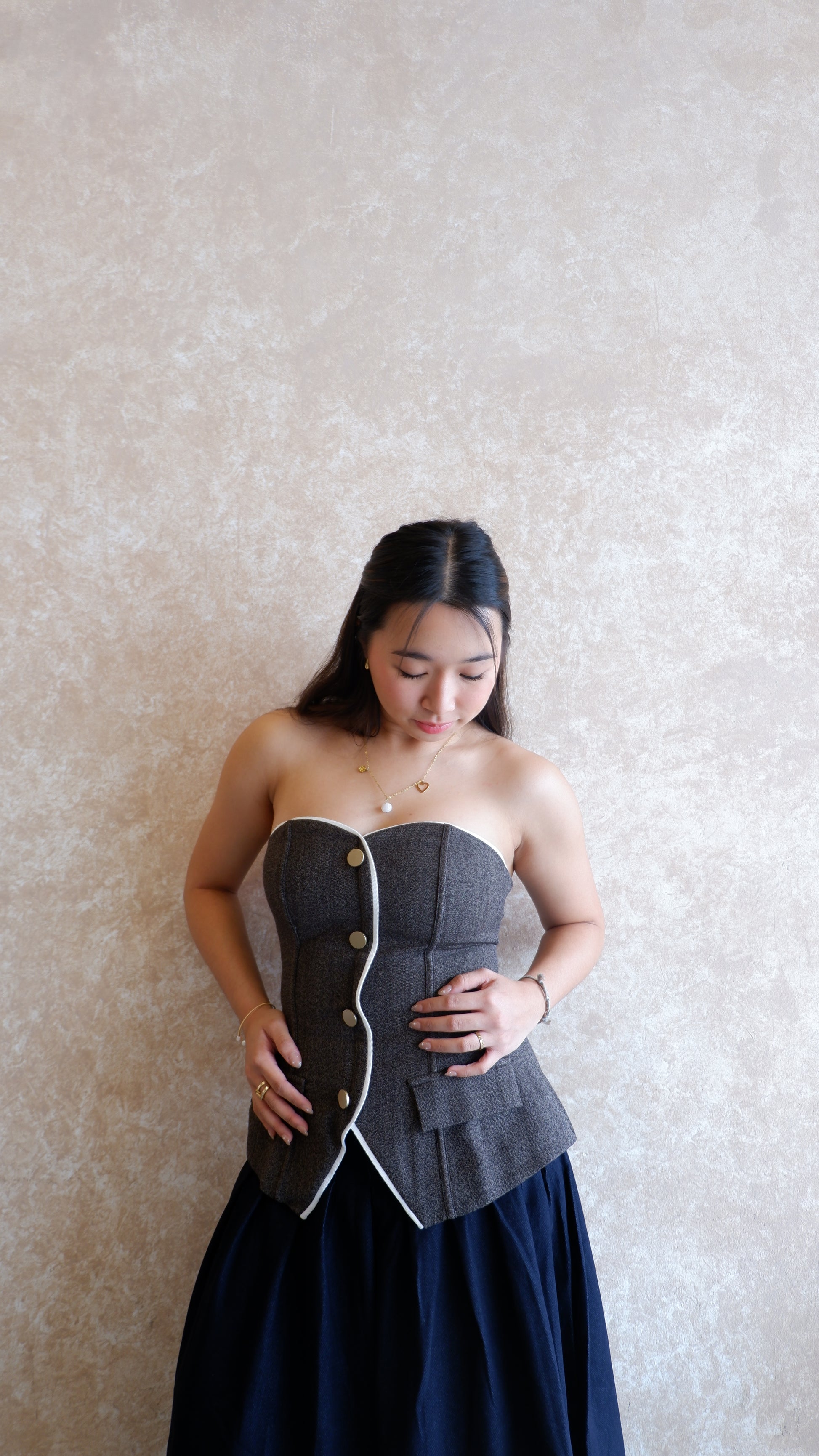 - subtle front boning for a sleek, structured look without compromising comfort.