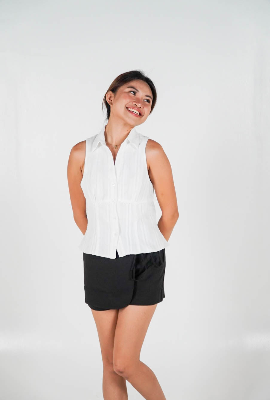Seamless front darts with subtle bust gathers for a flattering fit